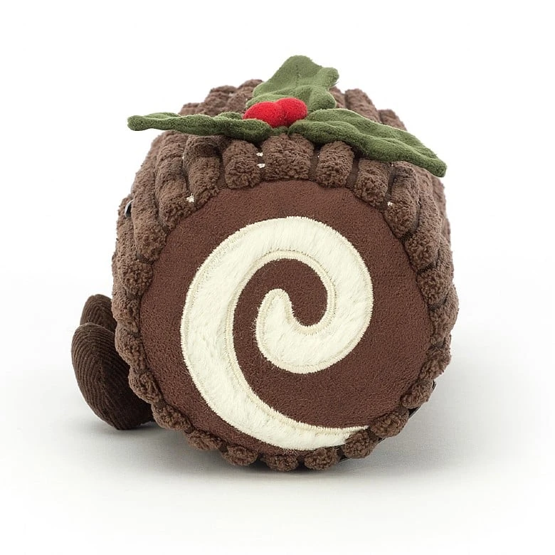 Amuseable Yule Log is chocolate heaven in scrumptious chunky cord. Each suedette end has a cream fur swirl, embroidered along the spiral. With truffle cord boots, suedette holly and white stitch sprinkles, this merry dessert is a showstopper.