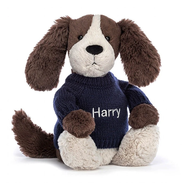 Be the first to review “Bashful Fudge Puppy With Personalised Navy Jumper” Cancel reply