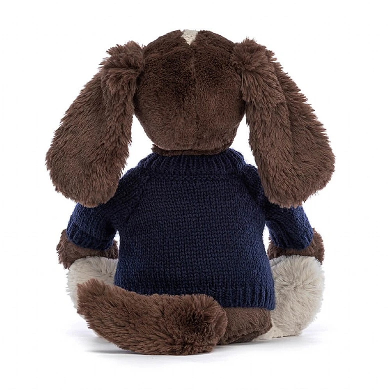Bashful Fudge Puppy With Personalised Navy Jumper