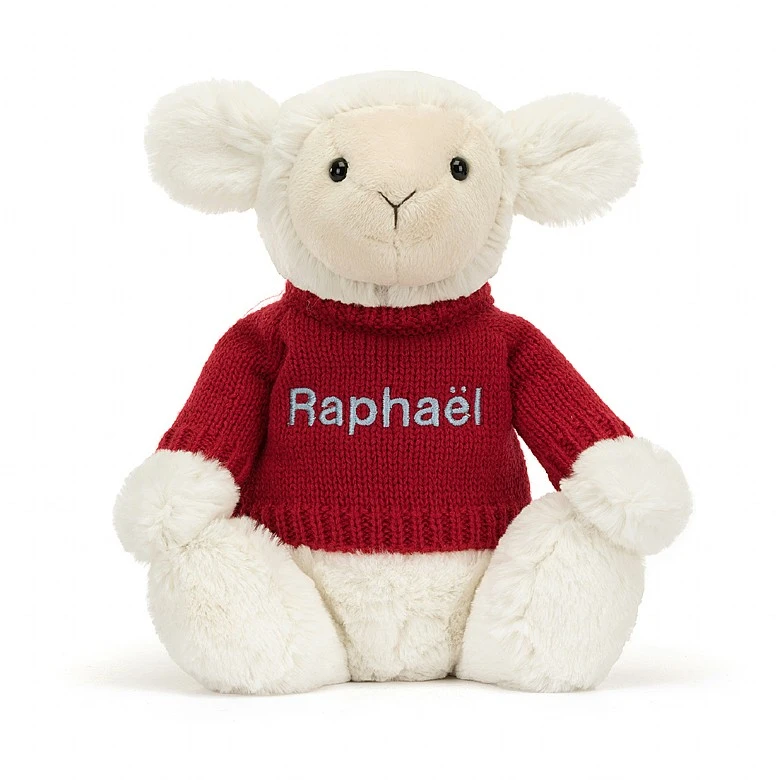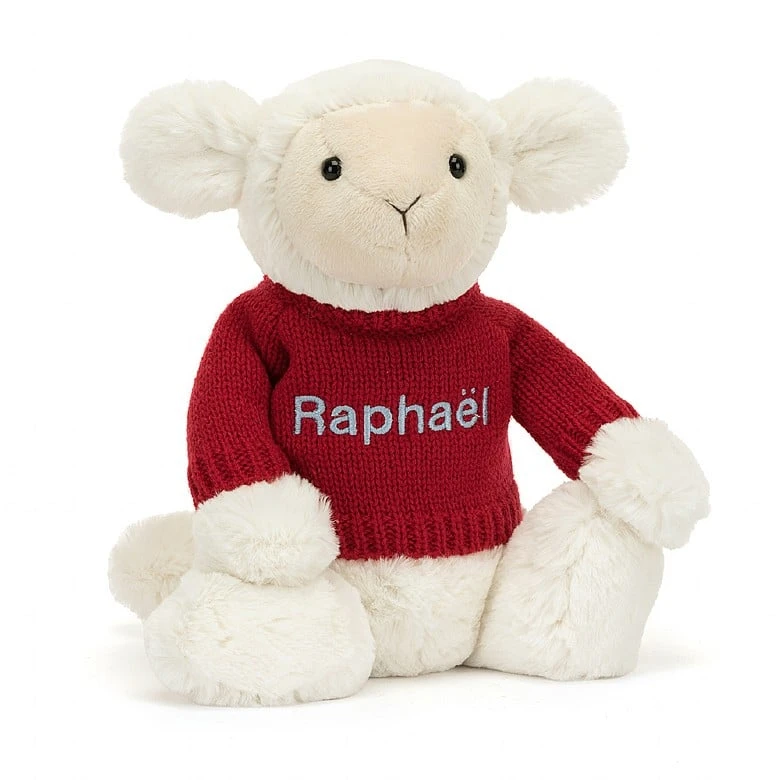 Bashful Lamb With Personalied Red Jumper