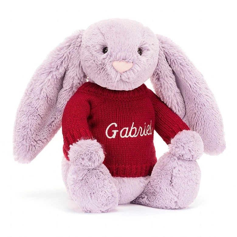 Bashful Lilac Bunny With Personalised Red Jumper