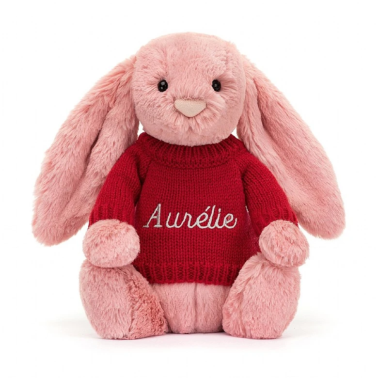 Bashful Petal Bunny With Personalised Red Jumper