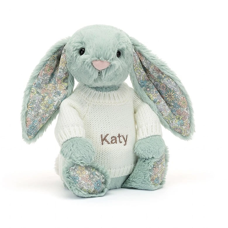 Blossom Sage Bunny With Personalised Cream Jumper